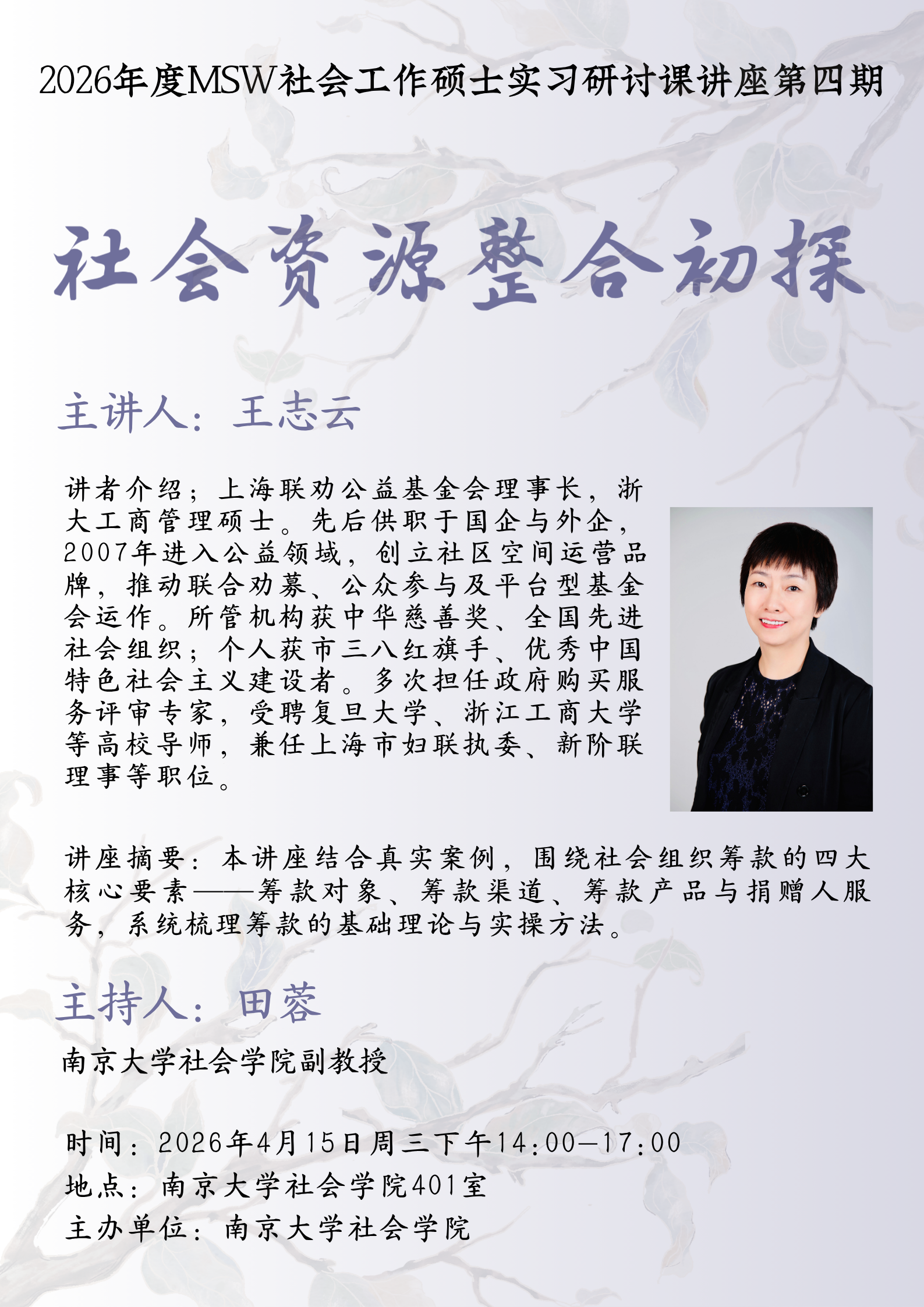讲座 | 2026年度MSW社会工作硕士实习研讨课讲座第四期2026.04 -