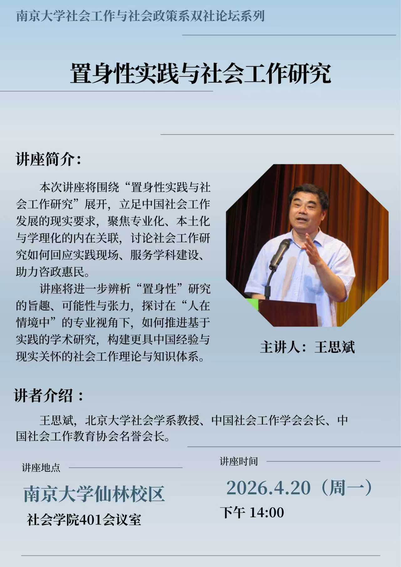 讲座 | 置身性实践与社会工作研究2026.04 -