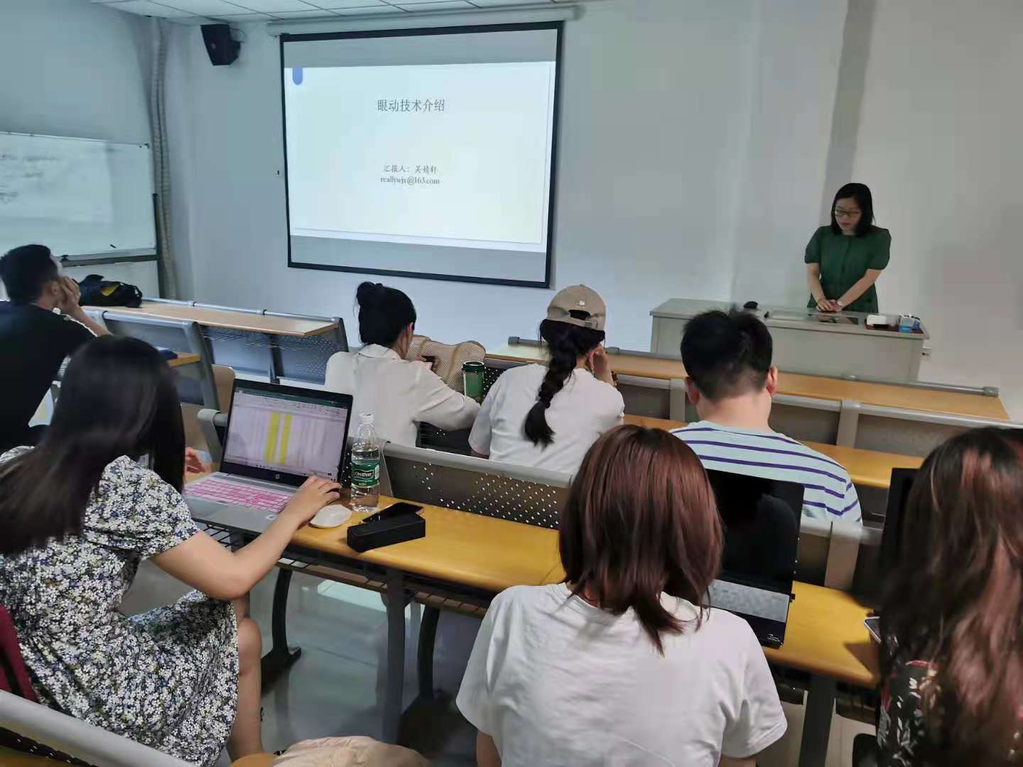 第二部分,李中权老师课题组吴婧轩同学给大家详细介绍了眼动仪的操作使用流程和注意事项,周仁来老师课题组周维逸、龙芳芳同学给大家分享了脑电设备和心电设备的操作和数据分析,让同学们更加直接明了地接触和学习。最后,三位同学针对大家对实验软硬件方面的疑惑进行了一一解答,并针对学院涉及实验要求以及实验方法等工作中存在的问题进行了深入交流探讨。
