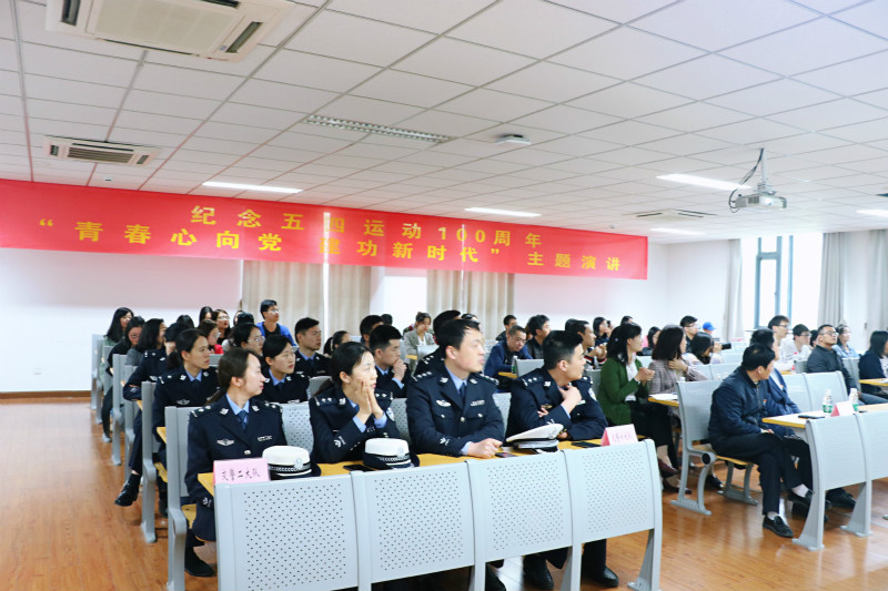 结束了天文台的参观学习,大家共同来到bw必威西汉姆联官网101教室,开启第二篇章——“青春心向党 建功新时代”纪念五四运动100周年主题演讲。活动从党员同志们共同观看反映交警工作、生活的宣传片《追》,以及展现女警风采的《你的汗水》宣传片中拉开序幕。