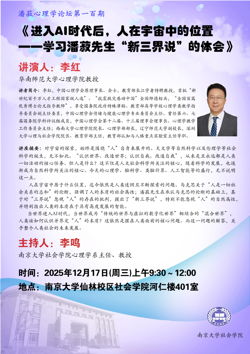 讲座 | 潘菽心理学论坛第一百期