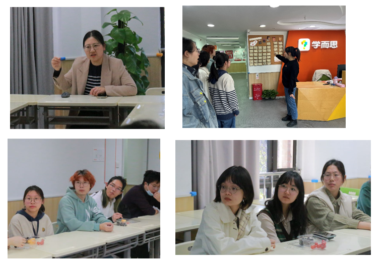 在互动环节,同学们先是实际体验了学而思的校区环境与科学思维和人文创作教具。之后学而思的资深人力资源负责人与同学们进行了深入的交流,分享了职业生涯规划方面的经验体会。同学们也详细了解了岗位待遇和工作内容,就如何优化简历投递等具体问题进行了细致的探讨,以便更好地准备未来的职业发展。