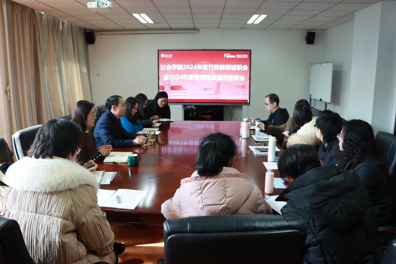 会上,学院行政教职工依次进行年度工作述职,总结回顾过去一年的工作,分享了各自在岗位上的心得与体会,并围绕学院管理提质增效提出意见建议。