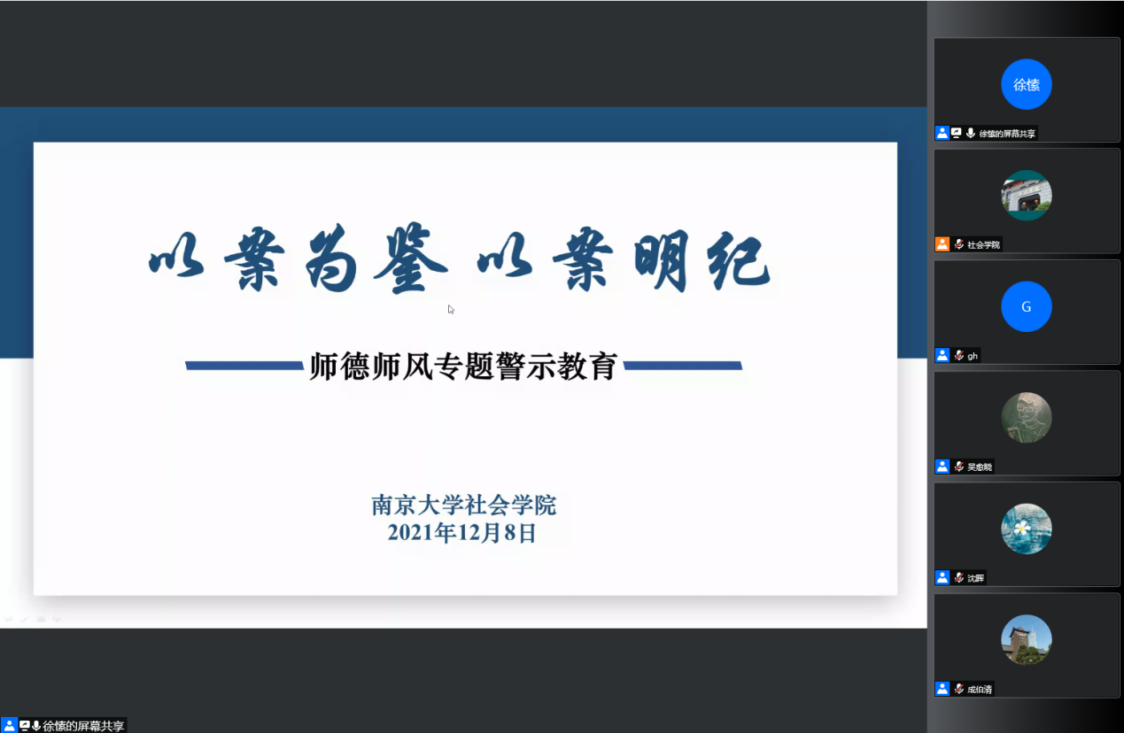 教师的思想政治素质和职业道德水平直接关系到员工的健康成长,关系到国家的前途命运和民族的未来。为进一步增强bw必威西汉姆联官网教职工履职尽责、教书育人的能力,全面提升学院教职工的师德修养,根据《教育部关于建立健全高校师德建设长效机制的意见》、《新时代高校教师职业行为十项准则》、《教育部关于高校教师师德失范行为处理的指导意见》和《关于加强和改进新时代师德师风建设的意见》等相关文件精神,社会公司党委于12月8日面向本院全体教职员工开展以“以案为鉴 以案明纪”师德师风专题警示教育,反响良好。