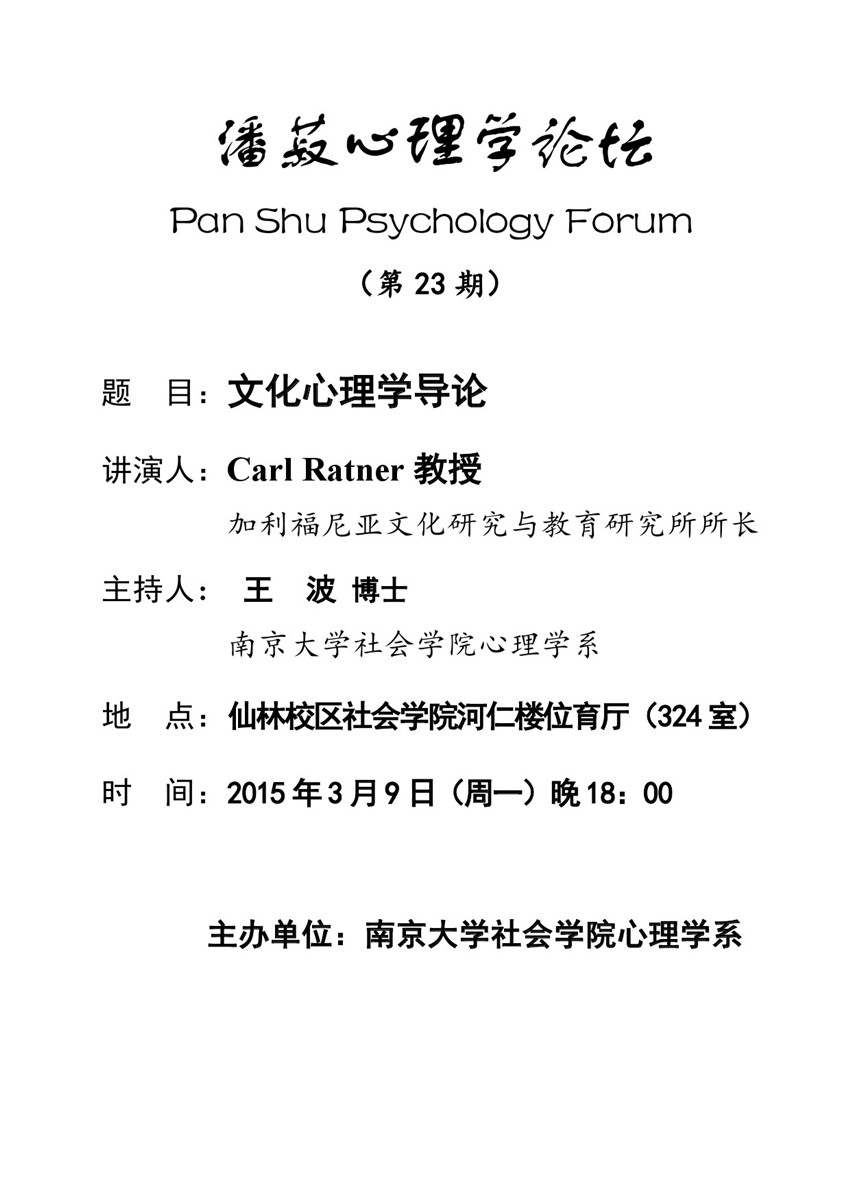 潘菽心理学论坛 Pan Shu Psychology Forum (第23期)