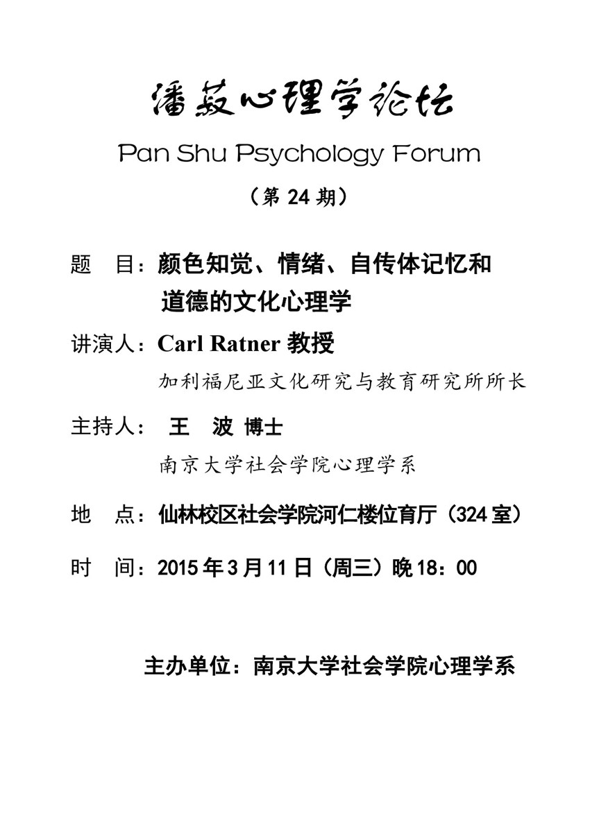 潘菽心理学论坛 Pan Shu Psychology Forum (第24期)