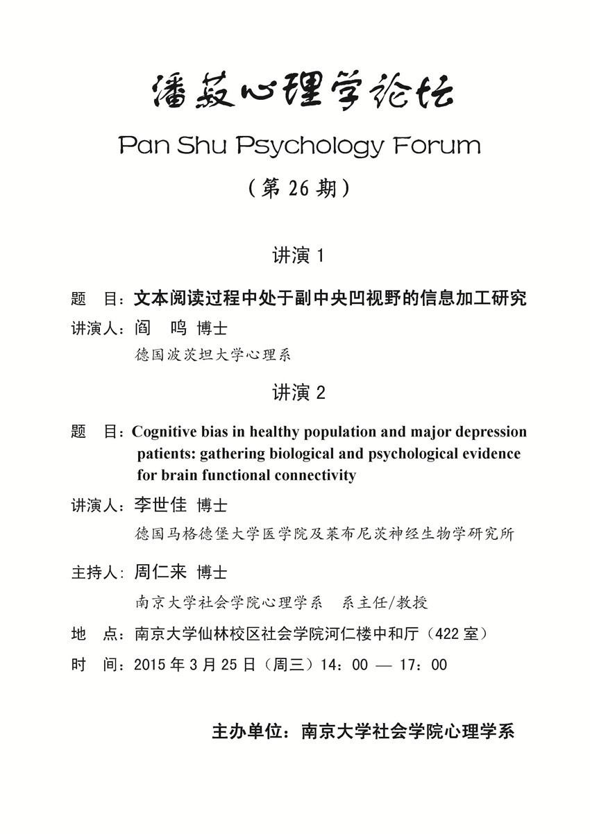 潘菽心理学论坛 Pan Shu Psychology Forum (第26期)