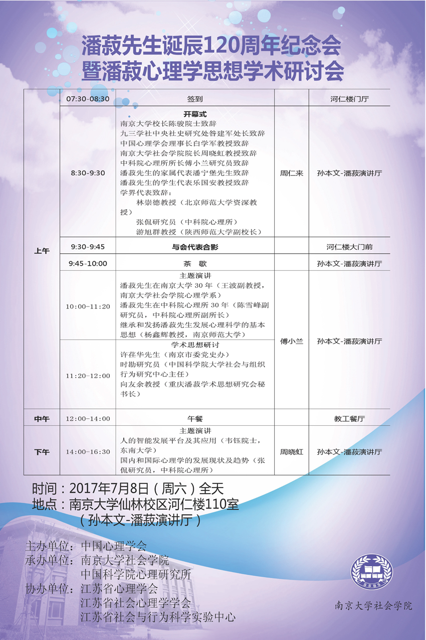 潘菽先生诞辰120周年纪念会暨潘菽心理学思想学术研讨会