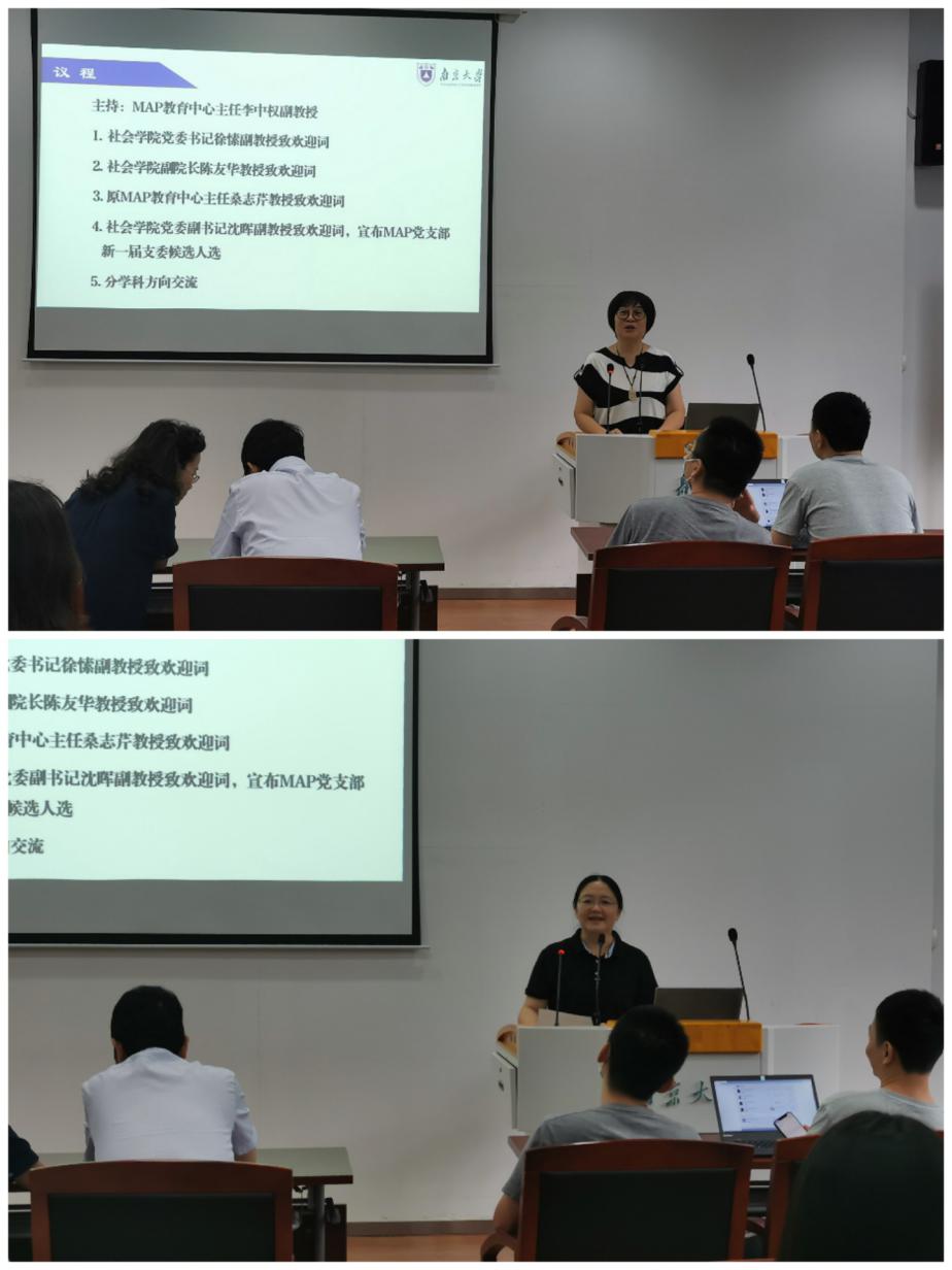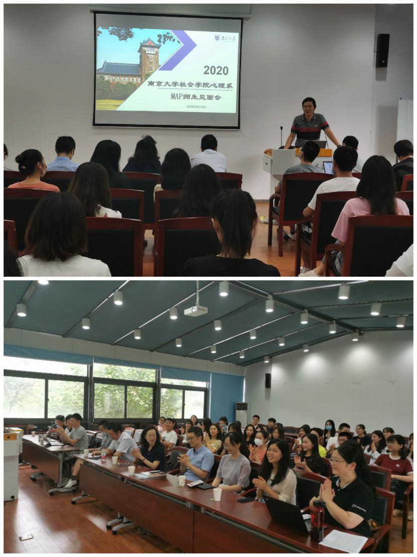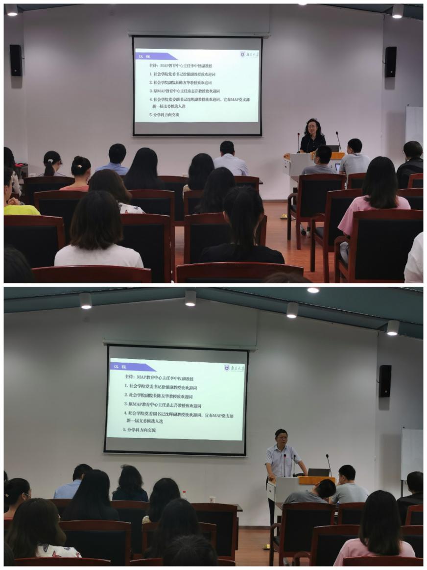本次师生见面会共分为领导致辞、师生互动合影、学科方向交流三个环节,师生见面会由MAP教育中心主任李中权老师主持。会议伊始,徐愫老师、陈友华老师、桑志芹教授(前MAP教育中心主任)均对2020级MAP同学的到来表示热烈欢迎,并结合自己的学习、工作经历,给同学们提出了建议和要求,同时祝愿同学们在南大学有所成、爱有所得,勉励大家成为一个“今日我以南大为荣,明日南大以我为荣”的优秀人才!沈晖老师还宣布了MAP党支部支委人选。