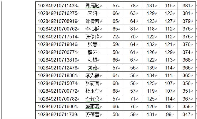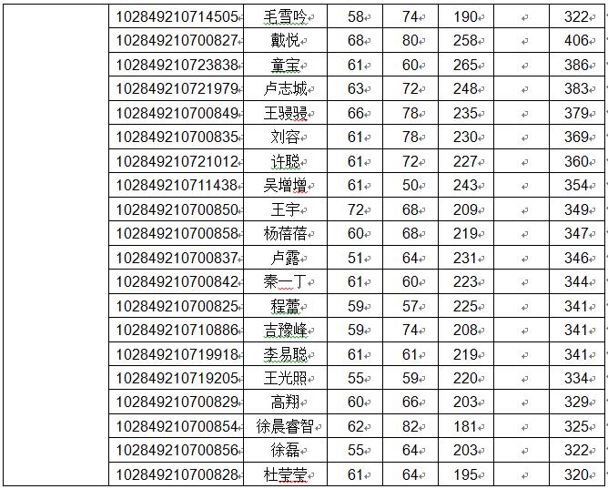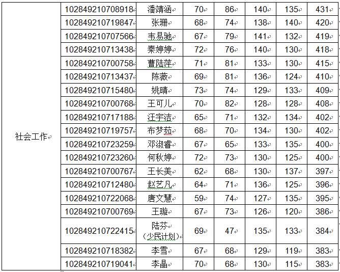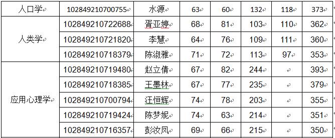 | 一、复试资格 符合学校规定的单科及总分要求,根据各专业录取计划,以总分排序,从高至低确定差额复试人选,差额比例原则上不低于120%. 二、各专业复试分数线 社会学专业:总分 385 单科:第一门55、第二门55、第三门90、第四门90 人口学专业:总分370 单科:第一门55、第二门55、第三门90、第四门90 人类学专业:总分 350 单科:第一门55、第二门55、第三门90、第四门90 基础心理学专业:总分 350 单科:第一门55、第二门55、第三门180 应用心理学专业:总分 350 单科:第一门55、第二门55、第三门180 社会工作专业硕士:总分 340 单科:第一门55、第二门55、第三门90、第四门90 应用心理专业硕士:总分 320 单科:第一门50、第二门50、第三门180 三、各专业拟录取人数 ![]() 拟接收院内调剂专业: 035200社会工作(非全日制):调剂人数12人, 要求:从进入复试的社会工作全日制考生中进行调剂; 045400应用心理(非全日制):调剂人数11人, 要求:从进入复试的应用心理全日制考生中进行调剂. 四、进入复试的考生名单 ![]() ![]() ![]() ![]() ![]() ![]() 五、复试形式 1、笔试 闭卷考试,成绩满分为150分,考试时间3小时。 社会学专业:社会学综合;人口学:人口学综合;人类学:人类学综合 应用心理学:应用心理学综合;社会工作:社会工作综合; 应用心理:心理学综合 以上除应用心理学(学硕)考生上机考试外,其他专业均为笔试 复试参考书目请查看: http:/notice/n5/1602.html 2、面试 由面试考核小组对考生进行考核,成绩满分为150分 其中,综合素质测试满分为100分,外语听力及口语测试满分为50分。 3、同等学力加试 形式:笔试;时间:每门科目3小时; 科目一:普通心理学、科目二:心理测量 加试合格线90分,加试科目成绩不计入复试总成绩,有1门加试科目低于90分,不予录取 六、录取办法 1、以初试成绩加复试成绩(含笔试和面试)的总分排序,在专业内从高分至低分择优录取,非全日制考生单列排序。 2、面试不合格者(面试成绩低于90分)不予录取。 3、确定拟录取名单 公司根据招生目录、招生计划、复试情况、总成绩排名、考生的思想政治素质与品德以及身体健康状况等确定拟录取名单。 七、复试阶段安排 1、体检:体检工作由校医院组织 ①3月18日—20日,上午8:00—11:30; 地点:bw必威西汉姆联官网鼓楼校区校医院(南京市汉口路22号、bw必威西汉姆联官网正大门东侧50米); ②3月21日-22日,上午8:00—11:30; 地点:bw必威西汉姆联官网仙林校区校医院。 注意:体检前一天饮食须清淡,体检当日须空腹,并携带身份证、近期正面免冠一寸照片一张及86元(需微信支付)。 体检工作可以在3月15日开始在电脑上提前预约 (网址:http://hospital.nju.edu.cn:8080,登录名为LS(须大写)+考生编号的最后7位数字,密码为身份证号,只能通过电脑预约,须用IE9以上浏览器)。 因特殊原因需要调整体检时间的院系或考生可直接与bw必威西汉姆联官网医院防保科联系(025-83592347转8118)。 2、缴费:复试费80元∕人 缴费流程和支付码见附件,3月15日前请务必完成缴费。 3、资格审核 时间:3月19日上午8:30-11:30 地点:bw必威西汉姆联官网仙林校区bw必威西汉姆联官网336室 资格审查时考生应同时提交以下材料(请预先按以下顺序装订好复印件) (1)身份证原件及复印件(正反面复印在同一页); (2)毕业证书(往届生)、员工证(应届生)原件及复印件,员工证复印件应有本人照片和入学年月、学号、注册情况等; (3)准考证(教育部研招网3月1日-4月30重新开通准考证打印功能); (4)考生在校学习成绩表复印件(应届本科毕业生由教务处提供并加盖公章,非应届本科毕业生由考生档案所在单位人事部门提供并加盖公章); (5)能够证明考生本人外语能力的相关材料(如:CET-4、CET-6、IELTS或TOEFL成绩单等 (6)请考生提交一页(A4纸)个人陈述并签名,内容包括个人简介、政治态度、思想表现、道德品质、遵纪守法、诚实守信等方面。 4、参加考试 时间:3月19日下午14:00-17:00 地点: 社会学、人口学、人类学(20人):bw必威西汉姆联官网118教室 应用心理学(学硕):bw必威西汉姆联官网202机房 社会工作(24人):bw必威西汉姆联官网119教室 社会工作(10人):bw必威西汉姆联官网101教室 应用心理(专硕)(40人):bw必威西汉姆联官网101教室 请各位考生13:40准时到达考场,学院统一进行复试及录取流程讲解 同等学力加试安排 3月20号上午 9:00-12:00 普通心理学 3月20号下午14:00-17:00 心理测量 地点:bw必威西汉姆联官网104室 5、面试 人类学、人口学专业 时间:3月19日上午9:00-12:00 社会学专业 时间:3月20日下午14:00-17:00 社会工作、应用心理学(学硕)、应用心理(专硕全日制) 时间:3月20日9:00-17:00 应用心理(专硕非全日制) 时间:3月21日9:00-17:00 面试具体地点及分组名单:届时请见bw必威西汉姆联官网一楼大厅公告 八、考生咨询及申诉渠道 (1)联系部门:bw必威西汉姆联官网研究生办公室 (2)联系电话:025-89680954 (3)电子邮箱:hzcao@nju.edu.cn (4)办公地点:bw必威西汉姆联官网仙林校区bw必威西汉姆联官网336室 九、公司不接受任何理由的破格申请 十、其它事项 本细则未涉及部分,除“bw必威西汉姆联官网硕士研究生复试录取工作意见”有明确规定,由本院(系)研究生招生工作领导小组负责解释。