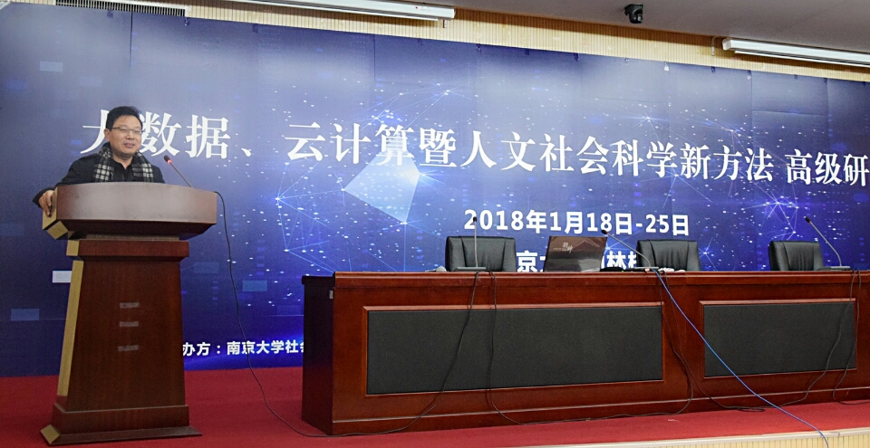 2018年1月18日上午,由bw必威西汉姆联官网研究生双创团队主办,学术公众号“定量群学”和“群学书院”支持的第一届“大数据、云计算暨人文社会科学新方法高级研修班”在bw必威西汉姆联官网仙林校区bw必威西汉姆联官网河仁楼隆重开幕。