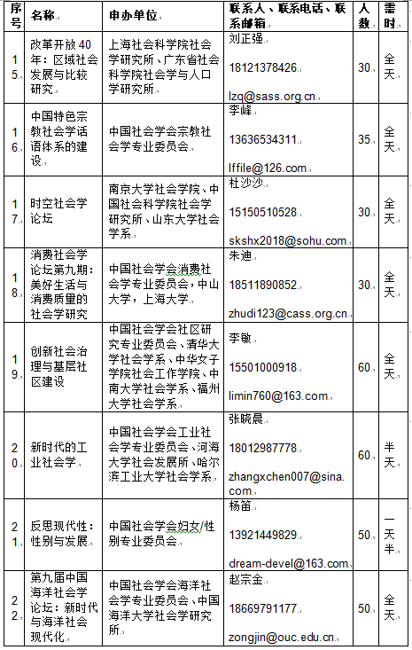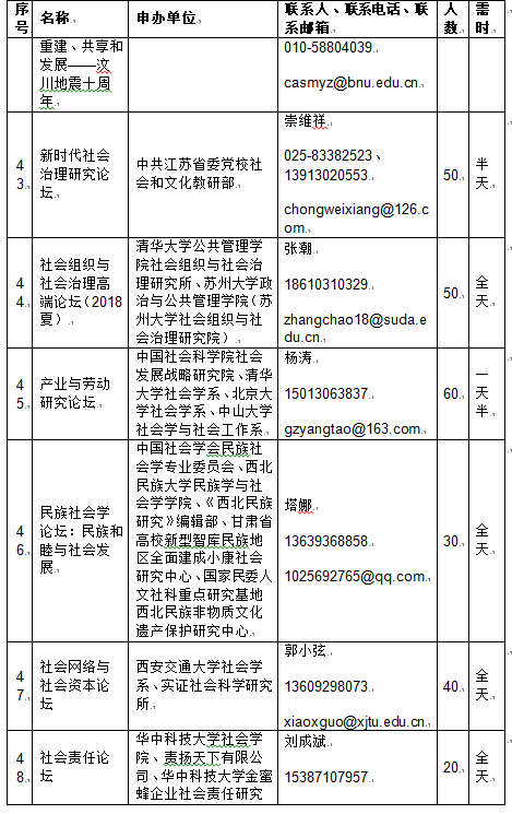 年会专题:2018年中国社会学年会分论坛信息