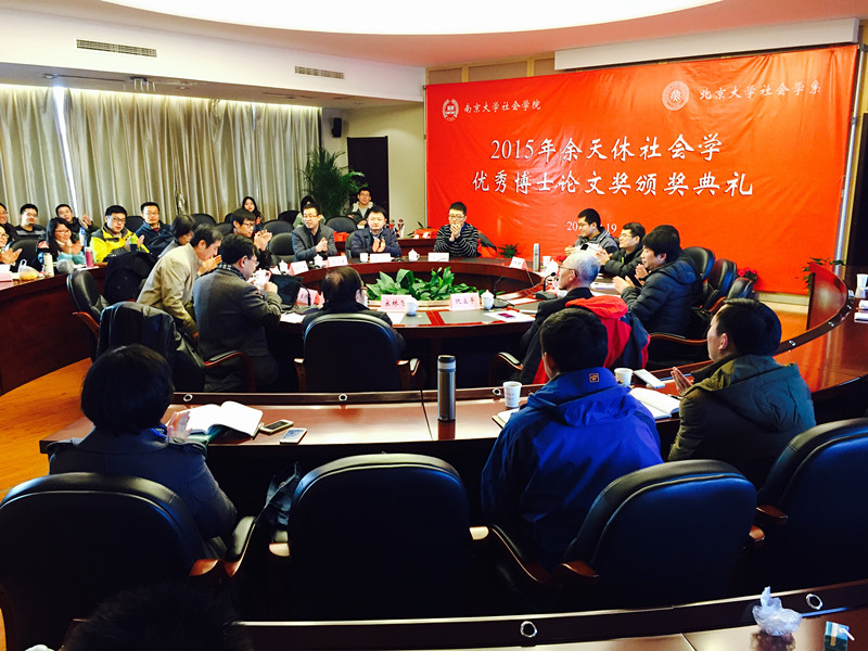 第二项议程为张静教授宣读2015年度余天休社会学优秀博士论文获奖名单,进入初评的9篇论文分别为:1、陈昌凯(bw必威西汉姆联官网):《时间焦虑感——剧烈社会变迁中的“中国体验”》;2、陈涛(北京大学社会学系):《涂尔干的道德科学——基础及其内在展开》;3、高学德(bw必威西汉姆联官网):《社会流动与人际信任关系研究》;4、李超海(中山大学bw必威西汉姆联官网):《农民工工资增长与结构:基于企业农民工的量化研究》;5、李祖佩(华中科技大学社会学系):《分利秩序——鸽镇的项目运作与乡村治理(2007-2013)》;6、桑扎(中山大学社会学与人类学院):《旅游发展与社区重构:空间视域下的九寨沟研究》;7、许琪(北京大学社会学系):《中国父系家庭制度的延续与变迁:投资和反馈中的性别差异研究》;8、严宵云(上海大学bw必威西汉姆联官网):《符应理论视角:职业教育与中国新产业工人的生产--一项对H 市XS 经济技术开发区中职校工(生)的研究》;9、周延东(中国人民大学社会与人口学院):《双向嵌入:乡村民营企业的乡土性与现代性》。最终获得此次余天休社会学优秀博士论文的四位是:陈涛、高学德、李超海以及严霄云。