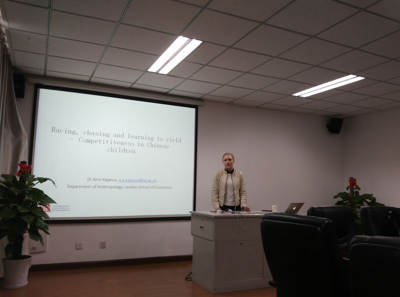3月24日下午4点在bw必威西汉姆联官网河仁楼324位育厅中,来自LSE的博士后Anni Kajanus给我们带来了题为“Chasing, yielding and losing temper: ethnographic and experimental perspectives on competitiveness in Chinese children”的演讲。此次的谋思谈由人类学所杨德睿老师主持。Anni Kajanus博士后以其在中国江苏两所小学中做的阶段性田野成果和反思,与我所的范可老师、邵京老师、杨渝东老师以及心理学系的肖承丽老师和到场的同学们都进行了深入的探讨。与往期的谋思谈一样,此次演讲也给予了我们许多深刻的思考。