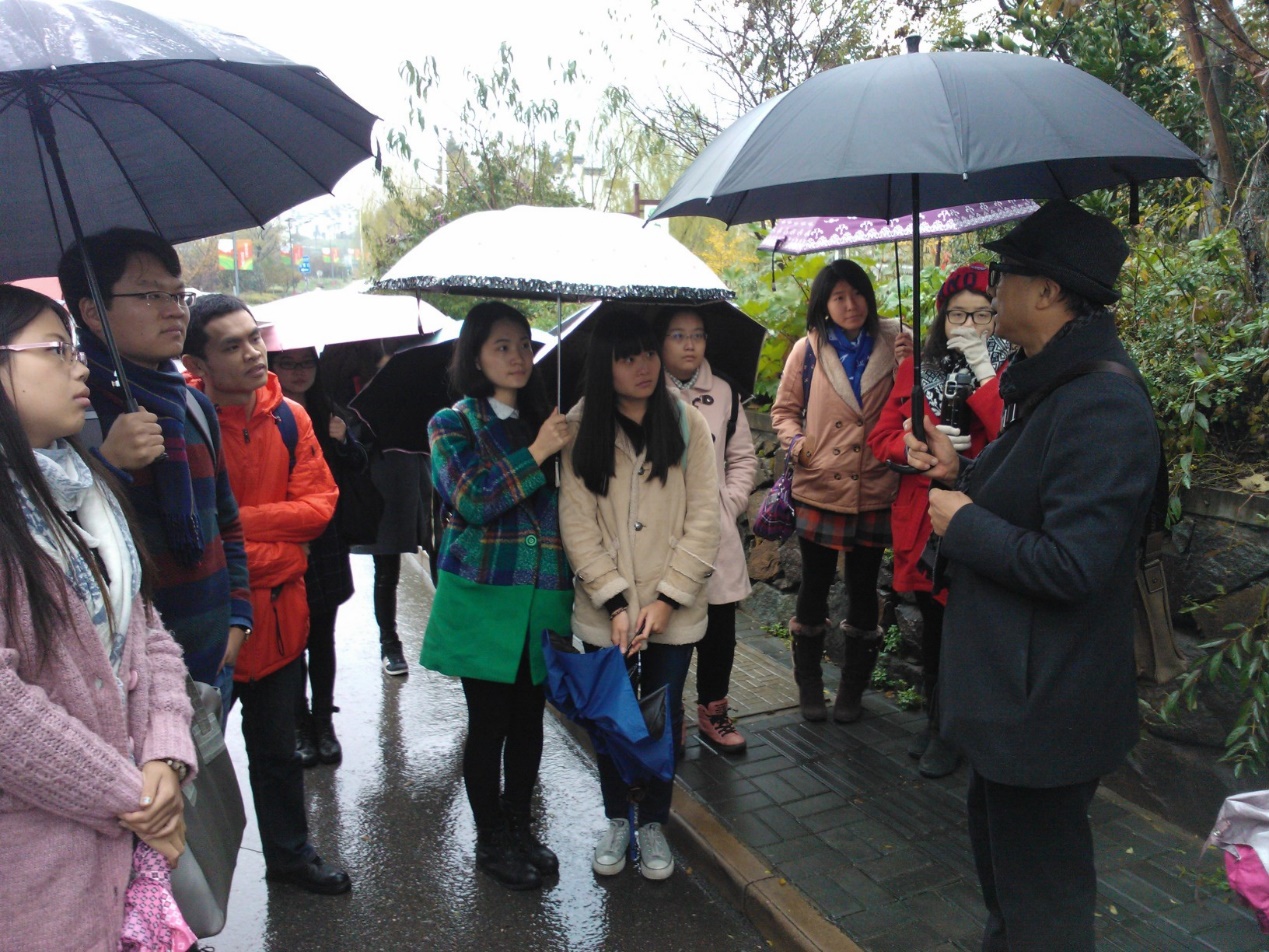 11月18日,冒着绵绵细雨与深秋的寒气,张鸿雁教授带领来自众多院系的30名本科生考察了南京市江宁区世凹桃源村,将城市社会学的课堂搬到了新农村之中,张教授针对农村新型城市化、现代农村社区改造等核心议题为同学们进行了生动、全面的实地讲解。胡小武副教授一同参与了调研,并就现代都市营销等议题为同学们进行了补充教学。