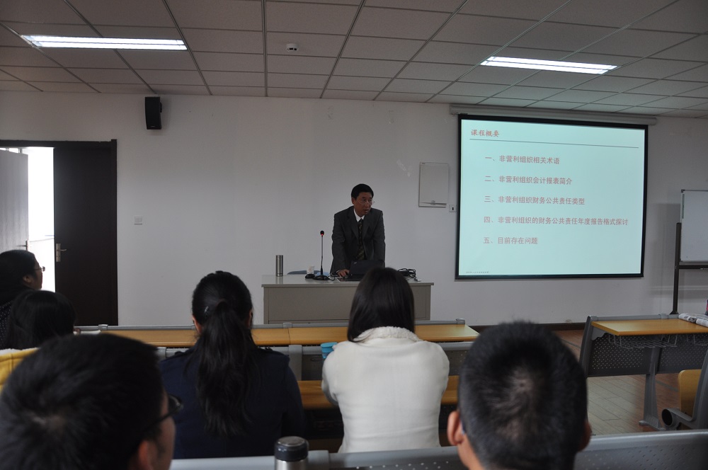 11月5日第四十一期河仁慈善论坛在河仁楼101室举行。论坛邀请了江苏天诚会计师事务所所长王正荣高级会计师,他带来题为“非营利组织的财务管理与公共责任”的主题讲演,由bw必威西汉姆联官网河仁社会慈善学院常务副经理陈友华教授主持。