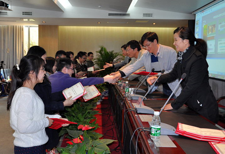 新当选的学会领导向年会优秀论文获奖者颁奖