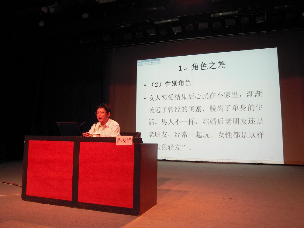 《通往幸福之路》是南京图书馆十月公益讲座的第二讲,也是南京图书馆历届公益学术讲座的总第893讲。随着当今社会的急剧变迁,婚姻与家庭问题逐渐成为影响人们生活的一个重要方面,如何把握好影响婚姻满意度与稳定性的关键因素成为营造一个美满幸福家庭的必要技巧。陈教授的演讲以如何维持美满婚姻为话题,在讲座中从社会、家庭结构变迁入手,谈及在婚姻经营中人性的弱点以及影响婚姻的门第、年龄、财富、兴趣等关键因素,同时以诙谐的社会生活经验为实例,使在场观众从学术高度与实战经验两方面领悟到了经营幸福美满家庭的精髓与技巧。