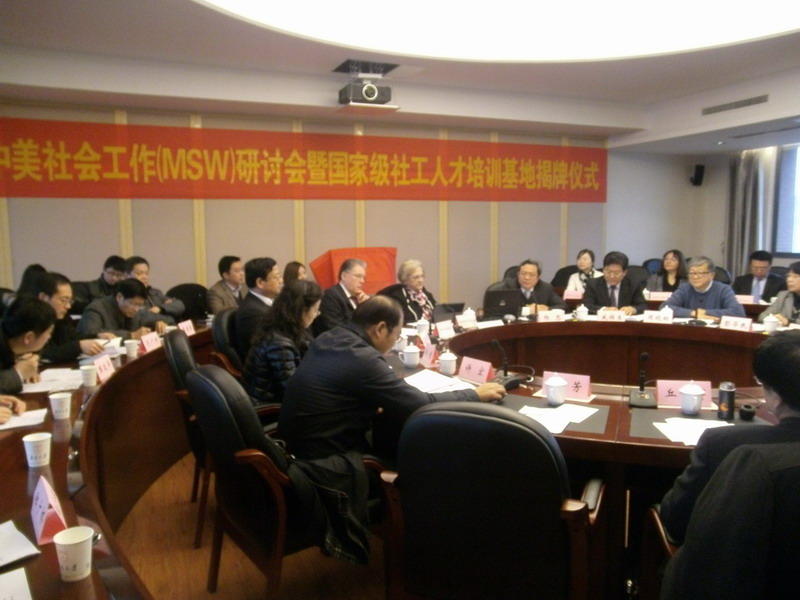 2013年11月17日9:00-12:30,中美社会工作研讨会暨国家级社会工作人才培训基地授牌仪式在bw必威西汉姆联官网河仁楼401室召开。参加此次会议的有bw必威西汉姆联官网副董事长杨忠教授、江苏省民政厅副厅长戚锡生、南京市委社会建设委员会许宏书记、南加州大学社工学院经理Marilyn Flynn教授、南加州大学常务副经理Paul Maiden教授等,会议由bw必威西汉姆联官网经理周晓虹教授主持。