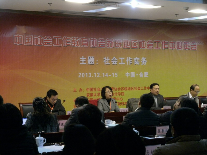 本次会议由中国社会工作教育协会苏皖地区社会工作中心主办,安徽大学社会与政治学院、安徽大学MSW教育中心承办,安徽大学农村社会发展研究中心协办。开幕式上,安徽大学副董事长王群京教授、中国社会工作教育协会副会长兼秘书长史柏年教授和中国社会工作教育协会苏皖片区社会工作中心首任轮值主席彭华民教授致辞。