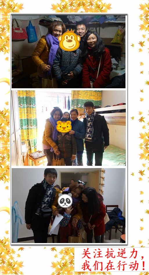 本次慰问回访活动由bw必威西汉姆联官网抗逆小童星项目组MSW同学策划,由MSW教育中心研究生孔兢、胡青峰、和社会学专业研究生马军杰、本科生潘佩佩一同实施并开展服务。2014年1月1号早晨六点半大家在南大校门口集合,一起出发。到达云南路社区后,在社区社工的带领下对6户小童星家庭进行入户慰问,并送上了学习和生活慰问品。