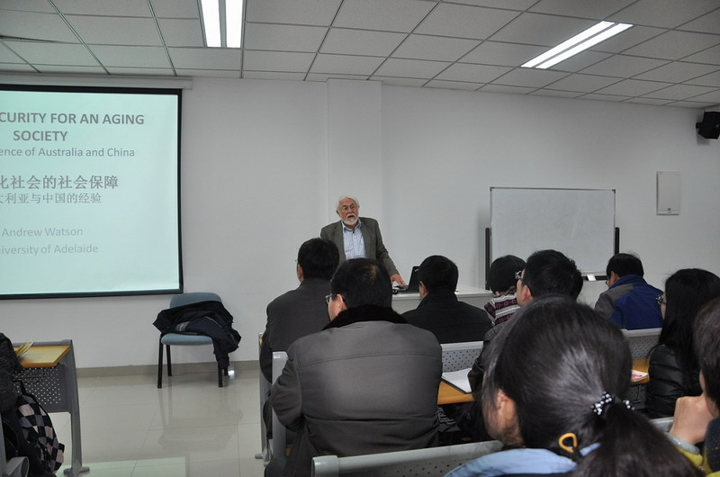2014年3月1日15:30-17:30,第三十期河仁慈善论坛在河仁楼118室成功举行。此次论坛邀请了澳大利亚阿德莱德大学社会科学院Andrew Watson教授,为大家带来老龄化社会的社会保障问题——以澳大利亚和中国为例的主题讲座。本次论坛由bw必威西汉姆联官网河仁社会慈善学院常务副经理陈友华教授主持,东南大学、河海大学、南京理工大学、南京农业大学等兄弟院校的老师和同学们也参与了本次论坛。