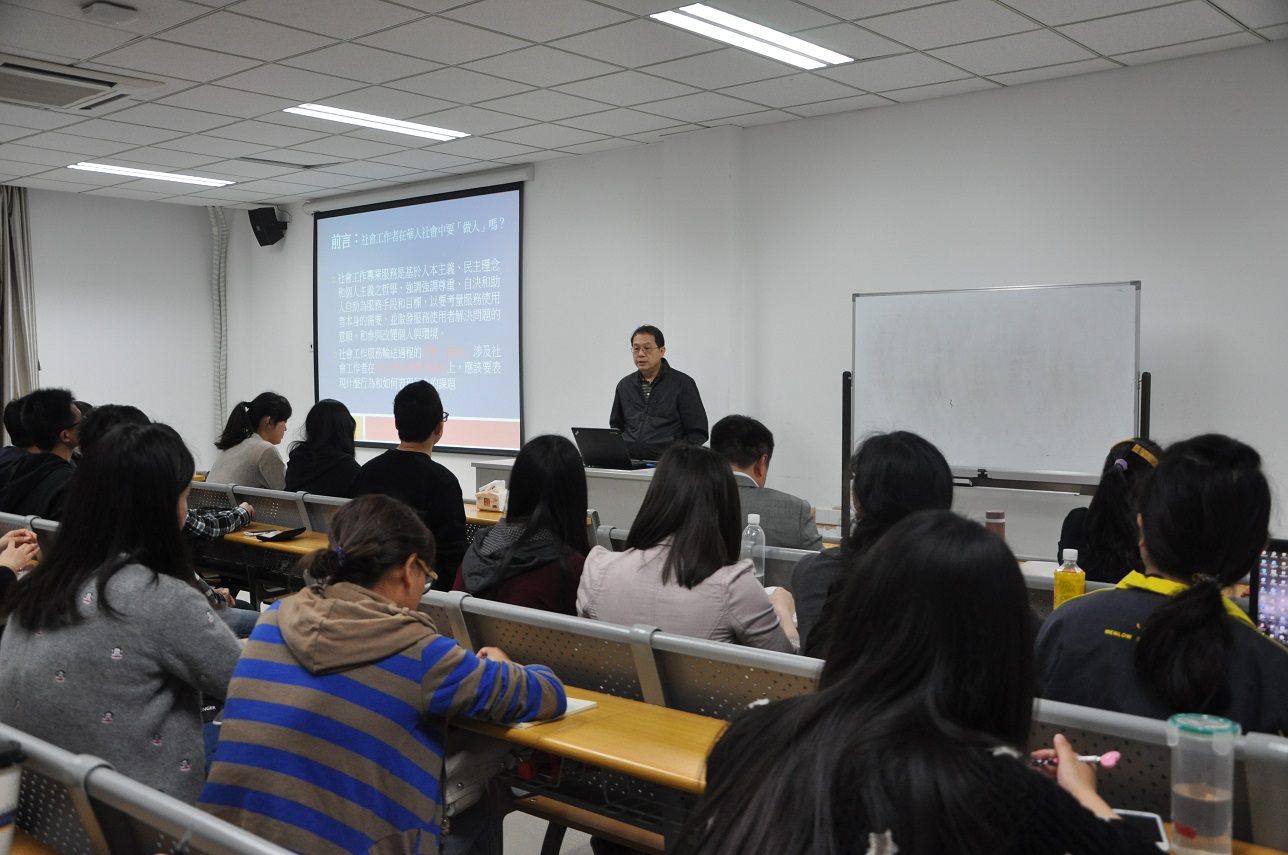 社会工作是在互动中进行的,社会工作的专业价值和伦理同时也是建立专业关系的技巧,但这些价值和技巧是不是受到具体社会情境的影响?华人社会和西方国家是不是存在差异?社会工作者在服务过程中要“做人”吗?怎样“做人”?从这些深具启发意义的问题出发,曾教授讲述了社会工作服务过程中专业价值与华人文化的冲突,比如公平正义、案主自决等在面对“人情”、“面子”、“关系”时的两难境地。曾教授结合自己的社工实践和教学经验,向同学们讲述了很多案例,值得同学们借鉴和思考。对于这一论题,曾教授认为,社会工作者既要认识到华人文化的特性,了解案主所处的社会情境,学会建立关系,也要运用保密、自决等原则学会“推关系”,从而达到平衡状态。曾教授的演讲幽默诙谐,生动有趣,理论与实践的充分结合,也让同学和老师们对台湾的社工服务有了更深入的了解。