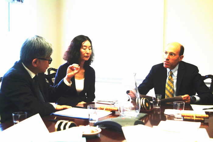周晓虹教授与布朗大学中国研究中心主任Steinfeld教授、主任助理王玲珍教授交谈