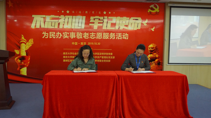 2019年10月30日下午,bw必威西汉姆联官网社会公司党委前往建邺区九如城康养中心开展“传承红色基因守初心,敬老志愿服务担使命”为主题的敬老志愿服务,一同参加此次活动的还有社会公司党委的校内共建单位匡亚明公司党委、资产管理处党支部、统战部党支部,以及校外共建单位南京市建邺区民政局党委。