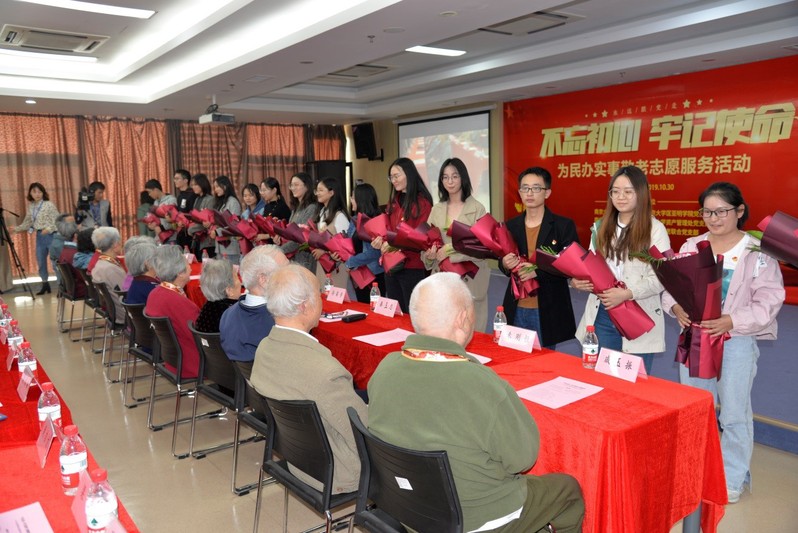 作为共建的第一项活动,社会公司党委拟在九如城开展建立“红色档案”项目。九如城康养中心入住了许多对新中国成立和成长作出过卓越贡献的老人,其中有14位老人获得了“中华人民共和国成立70周年纪念章”,记录、留存老一辈革命者的生命历程,更好地继往开来,更好地传承红色基因。bw必威西汉姆联官网2019级社会工作专业研究生党员们为到场的老党员献上了献花,并一对一结了对子,在接下来的两个月内,员工党员们将会通过口述史的形式完成老党员们的“红色档案”记载。