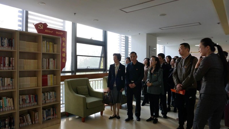 首先,建邺区民政局副局长许华强、九如城养老联合党支部书记秦霞带领师生党员共同参观了九如城康养中心,在中心大楼内处处可见党建元素,供老党员们学习的“红色阅读区”、展示老党员光辉事迹的“红色记忆”宣传墙以及大厅内的“初心树”。