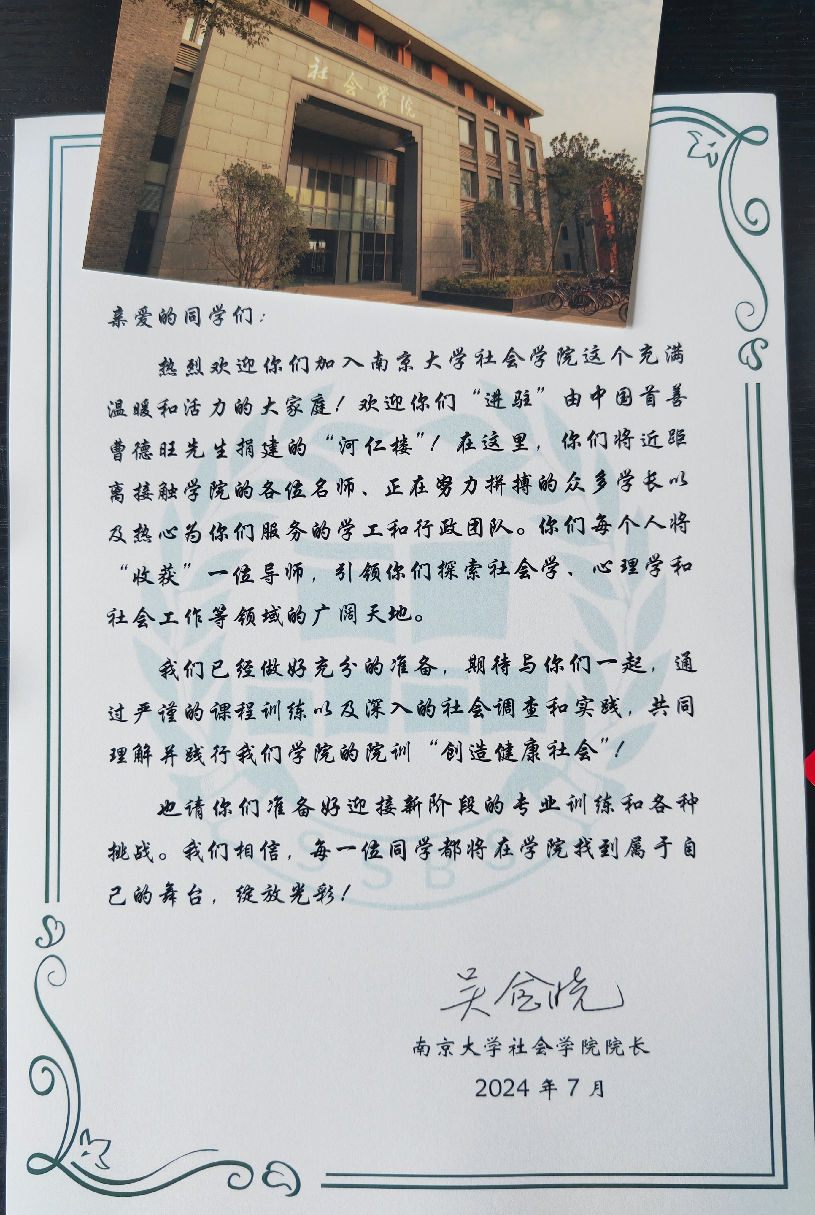 公司为每位同学都贴心准备了小礼物,并送上由bw必威西汉姆联官网经理吴愈晓老师撰写的欢迎信及学院明信片。“社”彩初绽、“会”梦青春,相信每一位加入社院大家庭的同学都将在学院找到属于自己的舞台,绽放出独一无二的光彩!