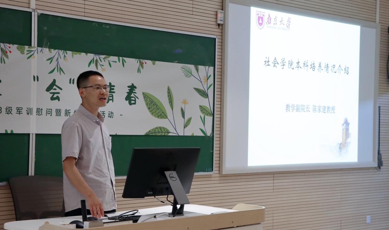 陈家建老师对本科培养做情况介绍,包括课程设置、导师选择、专业实习、学年及毕业论文、创新创业项目等内容,他勉励同学们在全面了解各专业培养方案的基础上,合理安排时间,做好学业规划,收获丰富充实的三年社院时光。