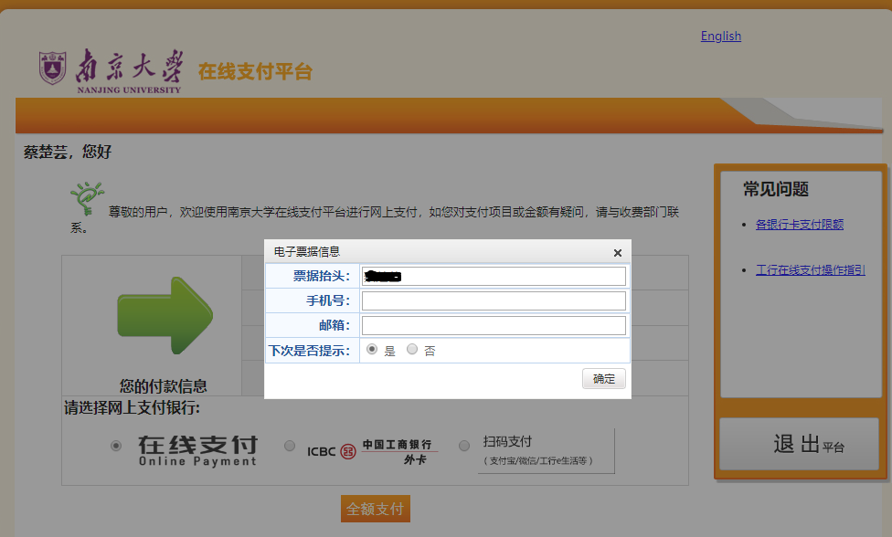 1、登录网址: http://pay.nju.edu.cn