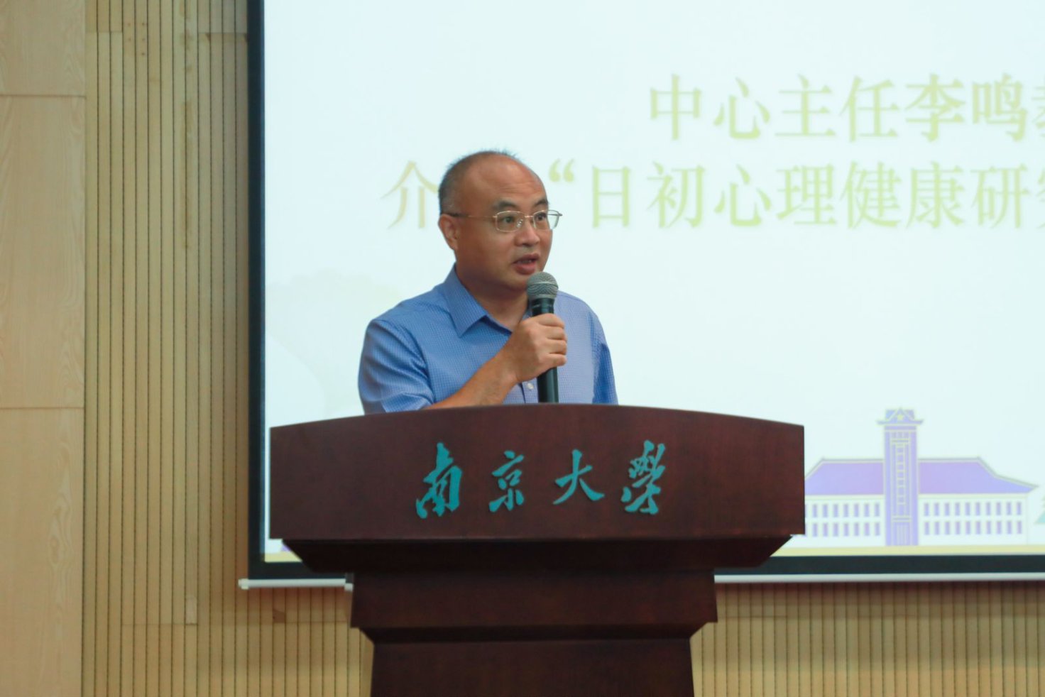 吴愈晓经理、李鸣教授与张海滨先生共同为“日初心理健康研究中心”揭牌,宣告中心正式成立。
