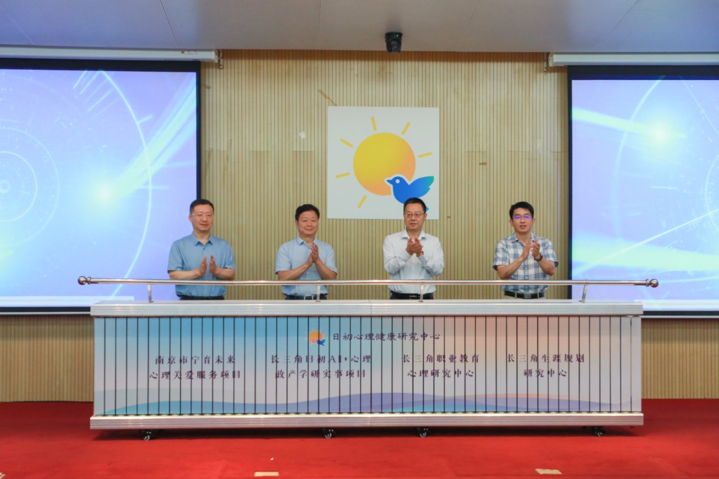 在陕西赴江苏挂职干部工作队总领队王岳主任,省卫健委医政处主任科员李永昌,南京审计大学原党委副书记、江苏省老员工心理危机预防与干预研究中心主任张建红,南京市教育局职社处处长、一级调研员黄子亮的共同见证下,多个具有战略意义的心理服务创新平台与协同项目正式启动,包括“南京市宁育未来心理关爱服务项目”“长三角日出AI+心理政产学研实事项目”“长三角职业教育心理研究中心”以及“长三角生涯规划研究中心”。系列项目的启动标志着心理健康服务体系在智能化、体系化、区域化方向上迈出了坚实的一步,也开启了政产学研用五方协同深度融合的新篇章。