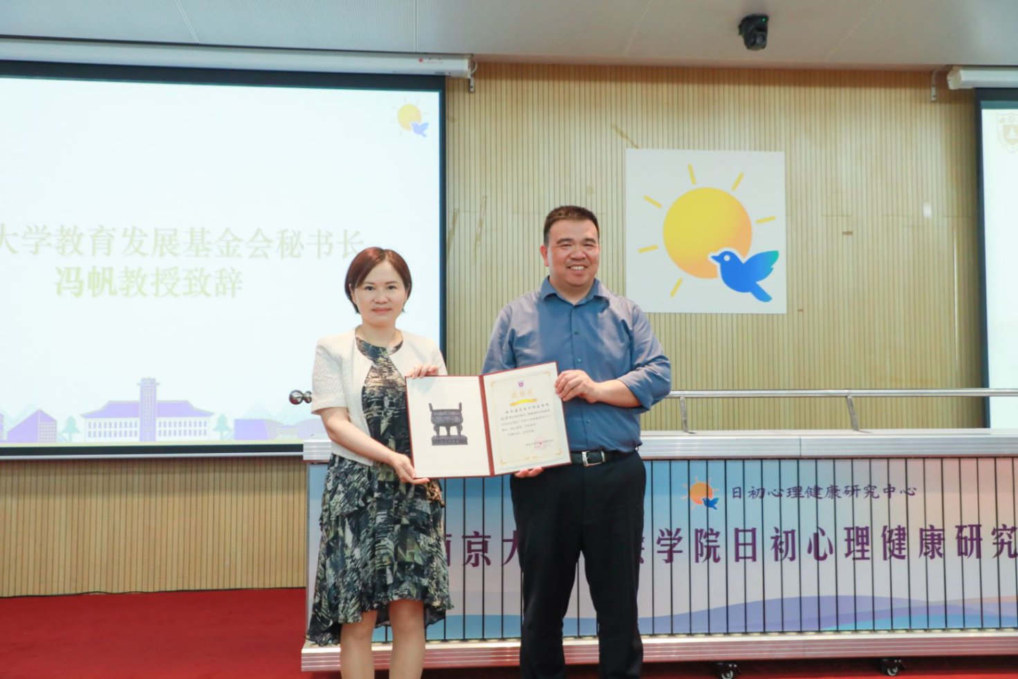 bw必威西汉姆联官网教育发展基金会秘书长冯帆教授代表基金会致辞,并为南京海灵电子科技有限公司颁发感谢状。“日初”象征破晓的希望,体现了校企合作、科技赋能社会的共同愿景。她表示,学校教育发展基金会将严格规范地管理使用捐赠资金,保障每一份善意都发挥最大价值。她期待日初心理健康研究中心成为人才培养的“立交桥”、心理服务的“示范点”、公益品牌的“引领者”。