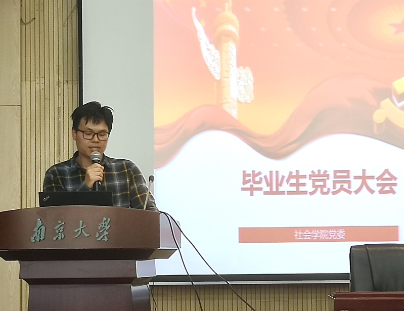 大会在徐愫书记的 “生逢盛世,肩负重任”开场致词中拉开序幕,徐书记表达了对毕业生党员的祝福与不舍,希望同学们能够牢记母校“诚朴雄伟,励学敦行”的校训,将南大精神、南大文化带到新的工作岗位、新的学校。在中国共产党成立一百周年之际,徐书记对每一位青年党员提出期盼:希望在座的每一位同学都能牢记党员身份,不忘初心,始终保持政治热情,永葆党员先锋本色,满怀对祖国和人民的赤诚之心,勇做走在时代前列的奋进者、开拓者、奉献者,以满腔的热情投身中国特色社会主义建设的伟大事业之中!